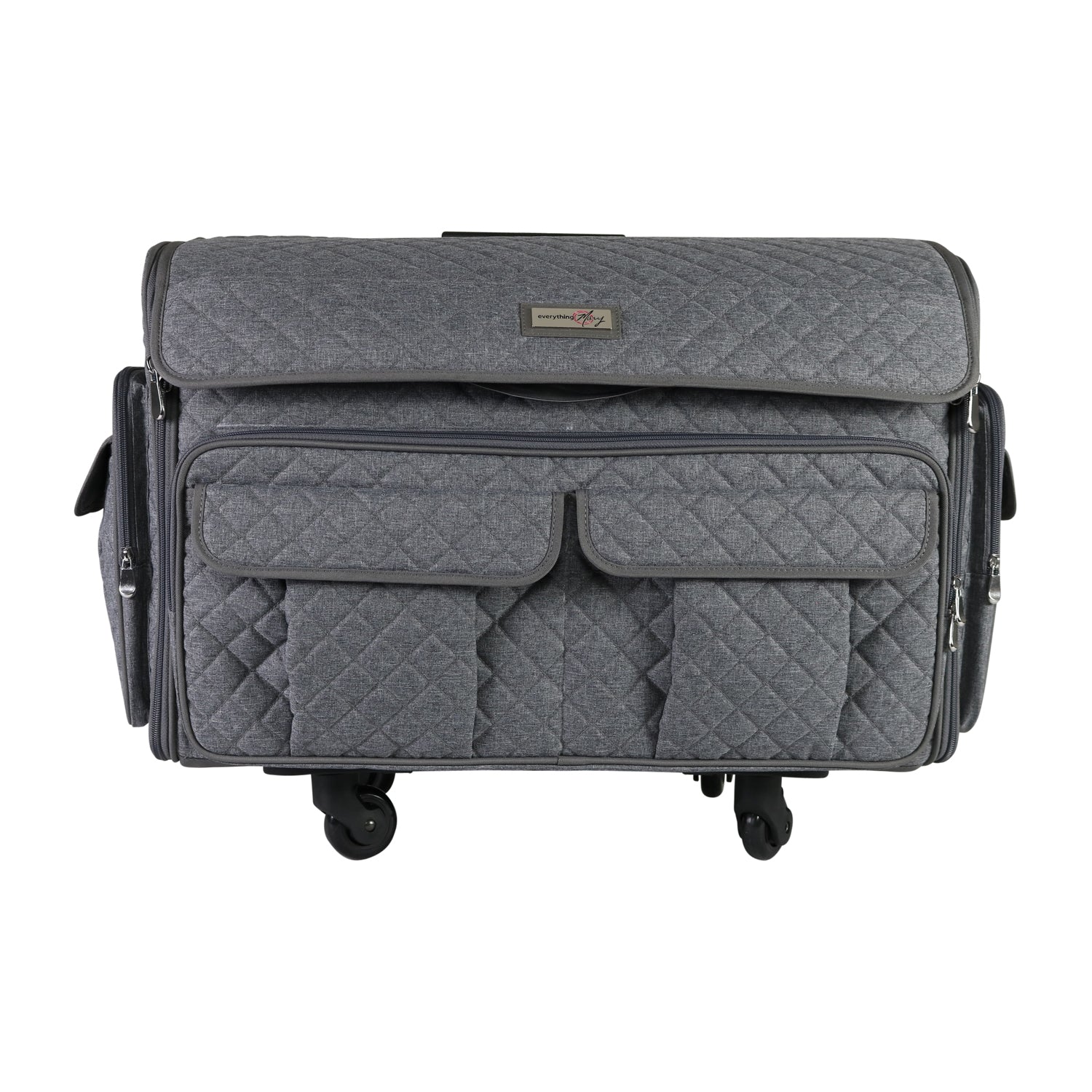 Everything Mary XXL 4 Wheel Collapsible Rolling Sewing Machine Storage Case, Heather Grey