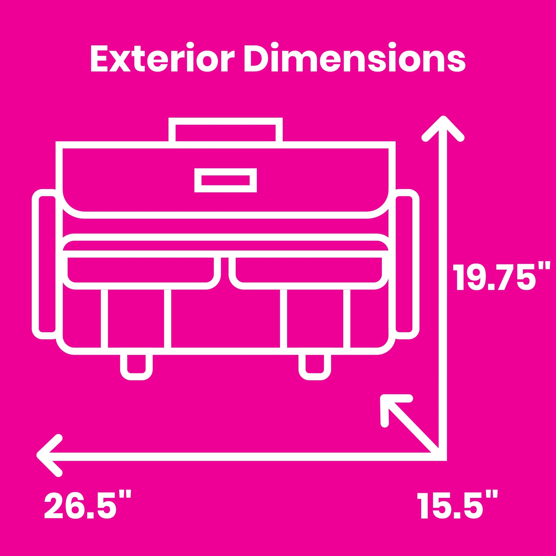 Exterior dimensions: 26.50" L x 15.50" W x 19.75" H